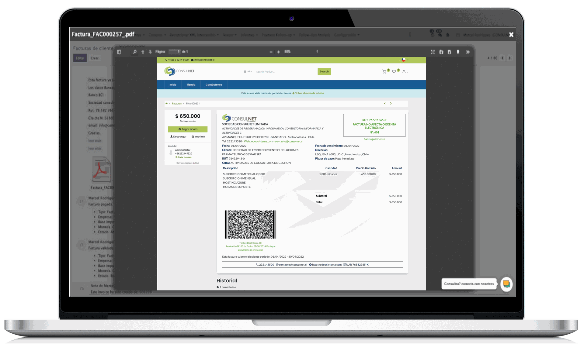- Incluye Módulos: Ventas, compras, inventario y facturación, fabricación, remuneración, multiempreas y multimoneda